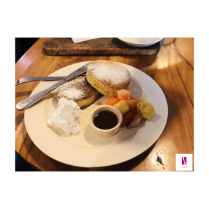 The pancakes with fresh fruits, maple and whipped cream were absolutely fantastic with just the right amount of fluffiness and deliciousness.